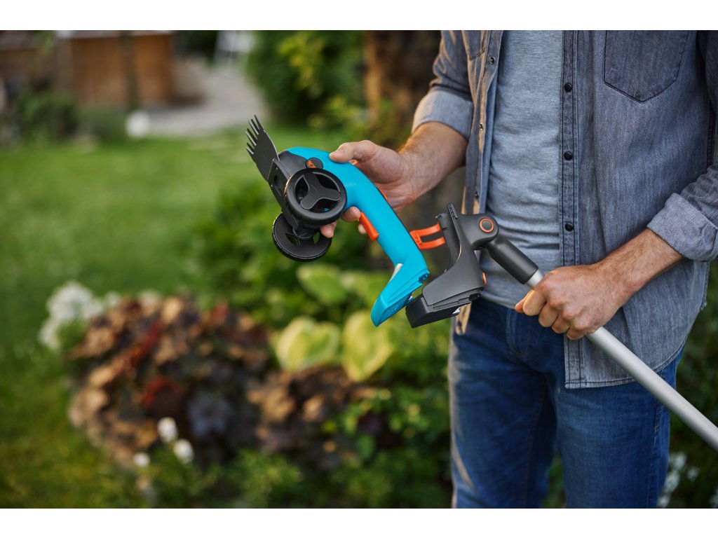 Für den Wechsel der Klingen sind keine Werkzeuge erforderlich. Das macht den Wechsel zwischen verschiedenen Gartenarbeiten schnell und unkompliziert.