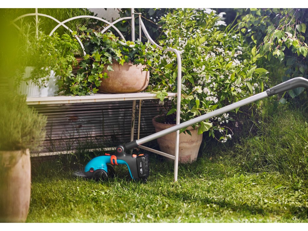 Die Akku-Gras- und Strauchschere PowerCut von GARDENA wurde entwickelt, um das Schneiden von Rasenkanten zu erleichtern. Kabellos und mit hochwertigen Präzisionsklingen ausgestattet, hilft die Schere Gärtnern dabei, ein sauberes und gepflegtes Ergebnis zu erzielen.