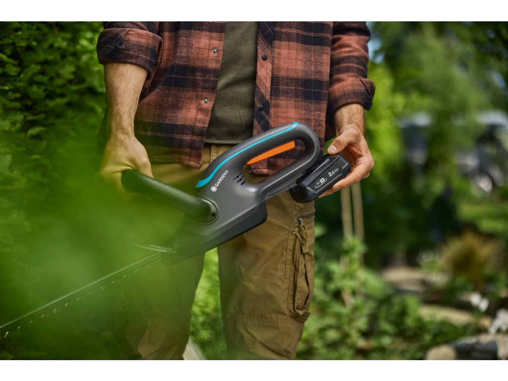 Die Heckenschere EasyCut 45/18V P4A von GARDENA ist eine leichte, kabellose Schere, die ergonomisch, effektiv und zuverlässig ist.