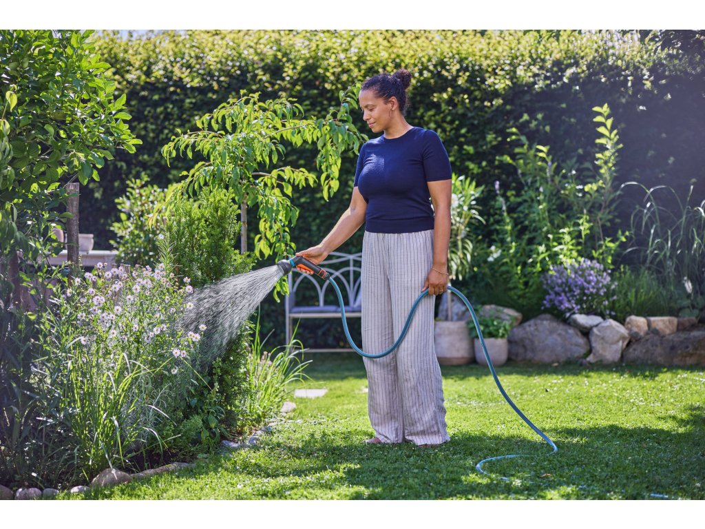 Die stufenlose Mengenregulierung ermöglicht es, den Wasserfluss schnell und einfach an verschiedene Aufgaben anzupassen. Der Wasserdurchfluss kann zwischen 100 % und 20 % eingestellt werden, wodurch das Sprühbild weicher wird.