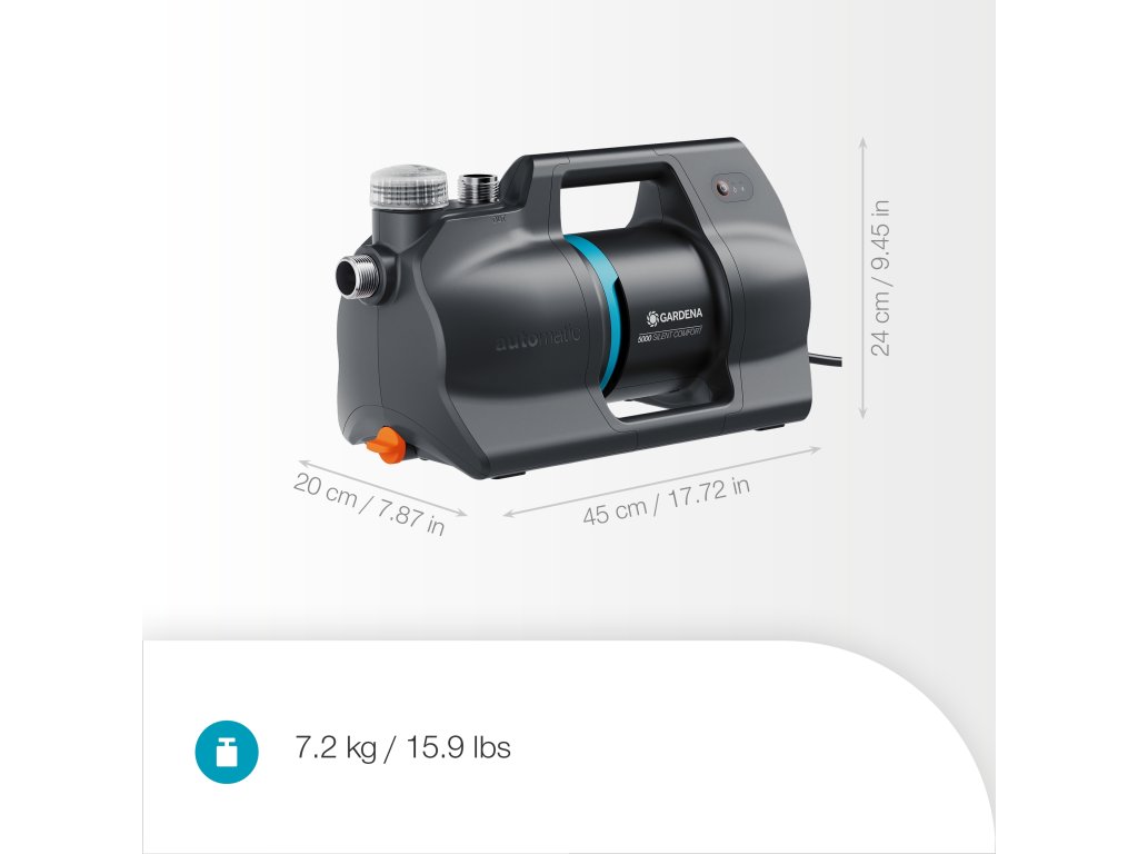- Geräuscharmer Pumpenbetrieb: Dank ihrer Silent-Technologie stört die leise Pumpe weder das Zuhause noch im Garten.