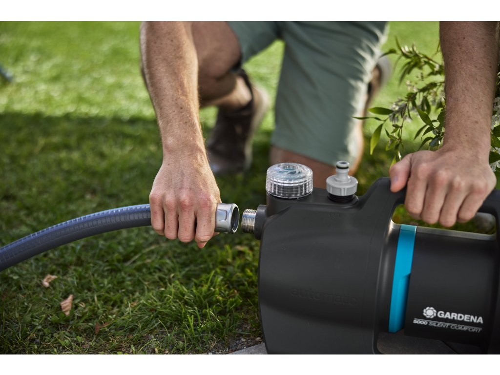 Der Haus- & Gartenautomat 5000 SilentComfort von GARDENA ist eine elektrisch betriebene Wasserpumpe, die automatisch startet, sobald sie benötigt wird. Dank der Silent-Technologie kann die Pumpe sowohl im Innen- als auch im Außenbereich leise und zuverlässig Wasser für Reinigungs- und Bewässerungszwecke bereitstellen.