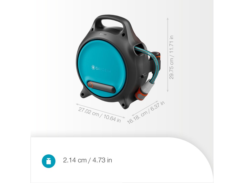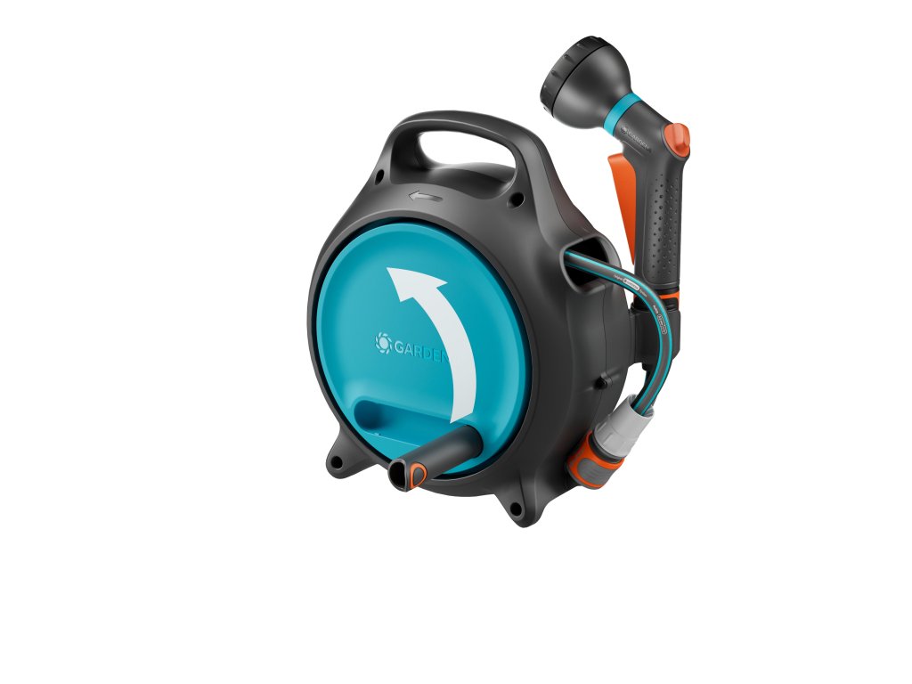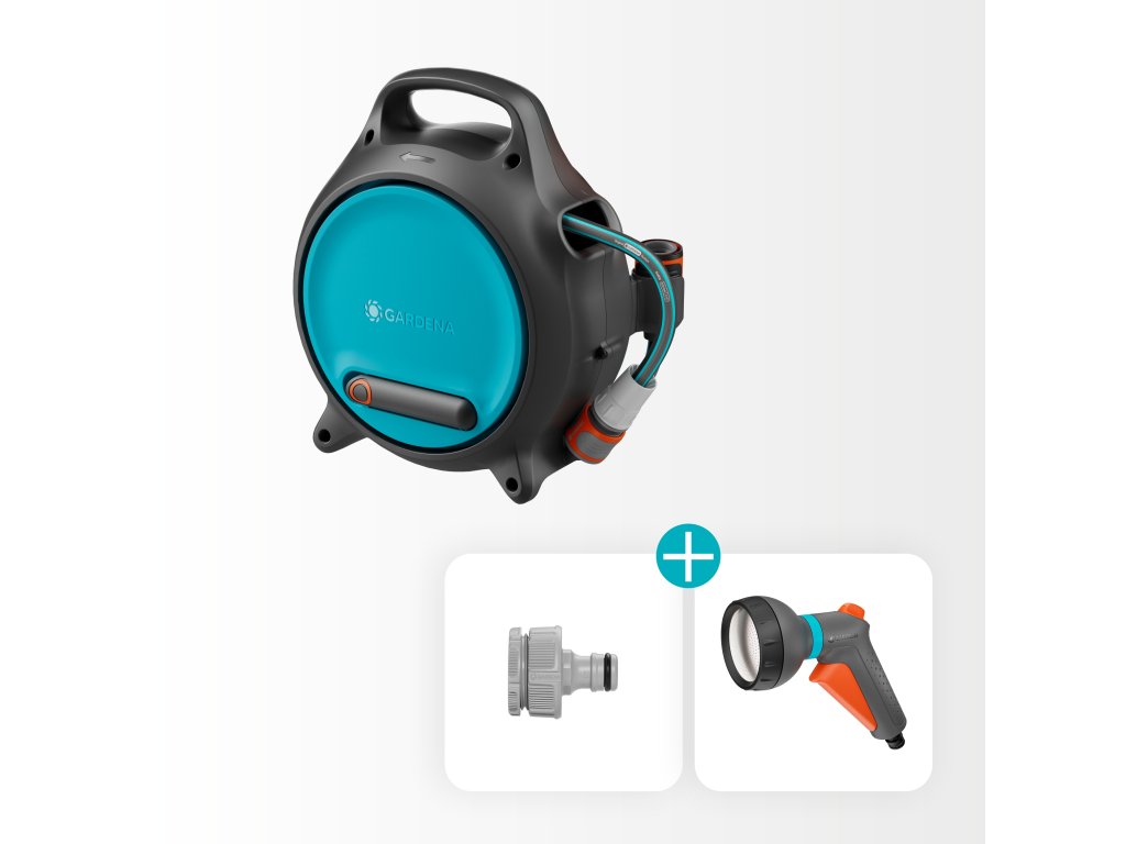 - Im Lieferumfang enthalten: 1x Tragbare Schlauchbox Move, 1x Classic Spritze, 1x Hahnverbinder mit Adapter, 1x Gerätehalterung