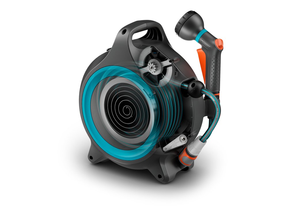 - Automatisches Aufrollen: Automatisches, verwicklungsfreies Aufrollen des Schlauches mit kontrolliertem Einzug dank RollControll.