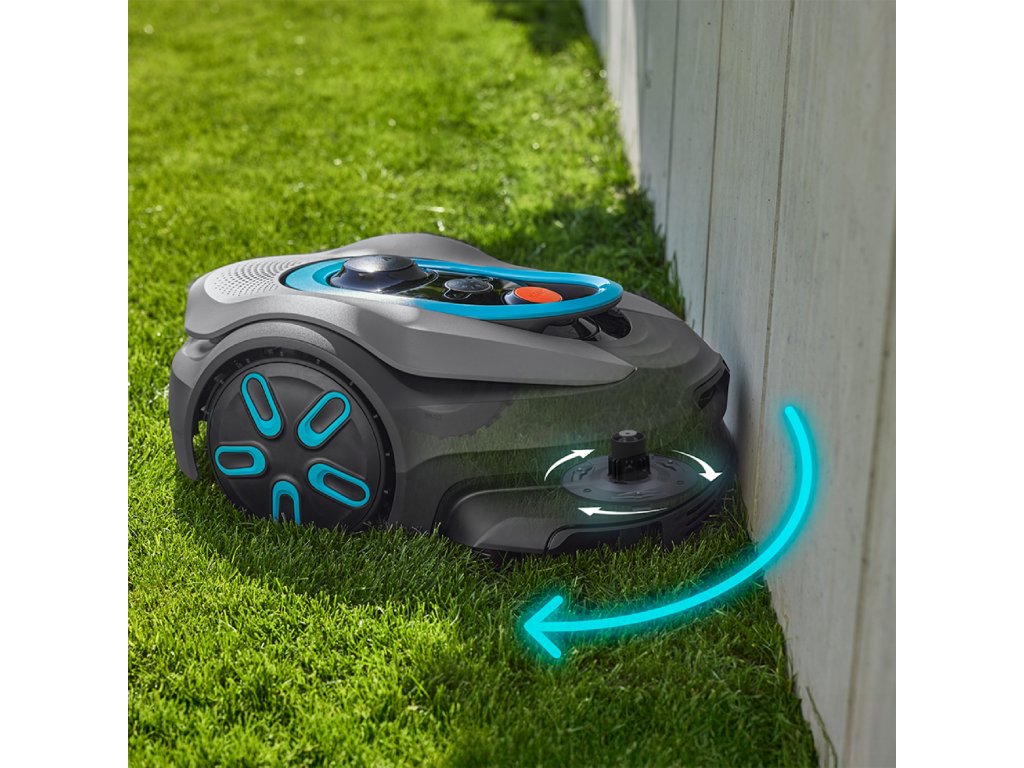 Durch die eingebaute Kamera mit Vision-KI-Technologie mäht der Mähroboter präzise entlang der Kanten und sorgt so für einen gepflegten Rasen. Die Messer befinden sich im hinteren Bereich des Mähers, um die Sicherheit von Menschen und Tieren zu erhöhen. Sobald der Mähroboter eine Wand oder einen Zaun erreicht, dreht er sich vollständig entlang der Kante. Diese Drehung ermöglicht es ihm, auch das Gras zu erreichen, das nahe an festen Begrenzungen wächst