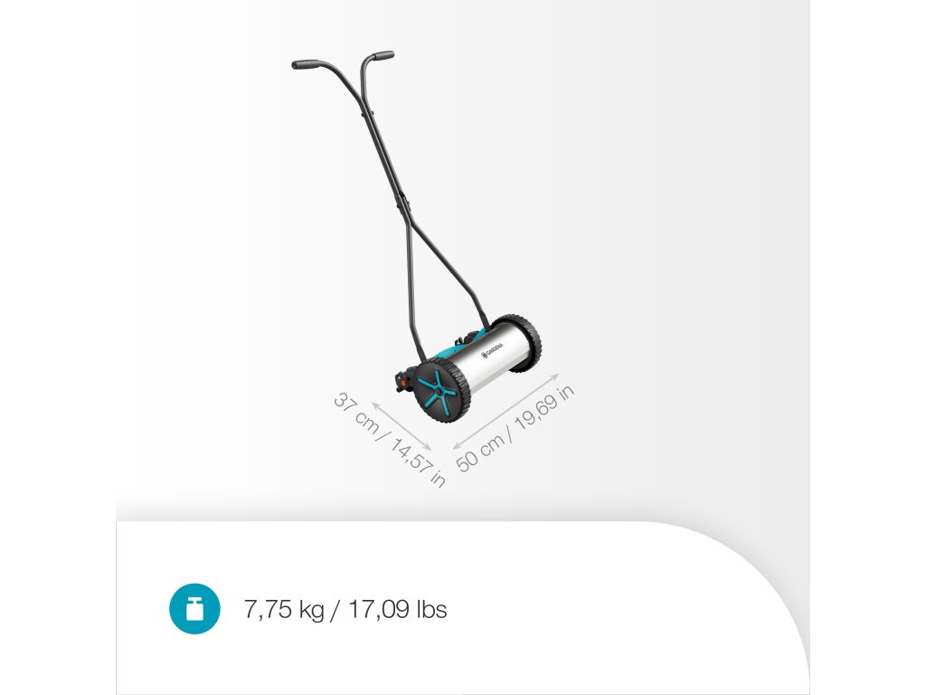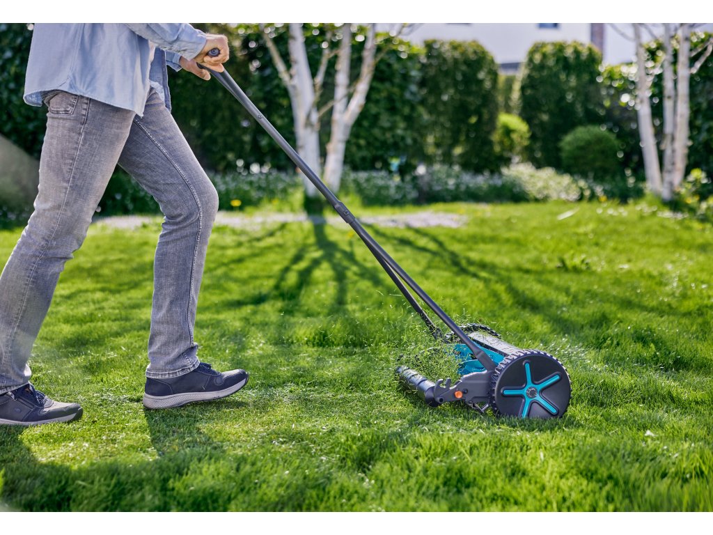 - Sofort einsatzbereit: Der Spindelmäher ist einsatzbereit, ohne dass vor dem Mähen manuelle Einstellungen erforderlich sind.