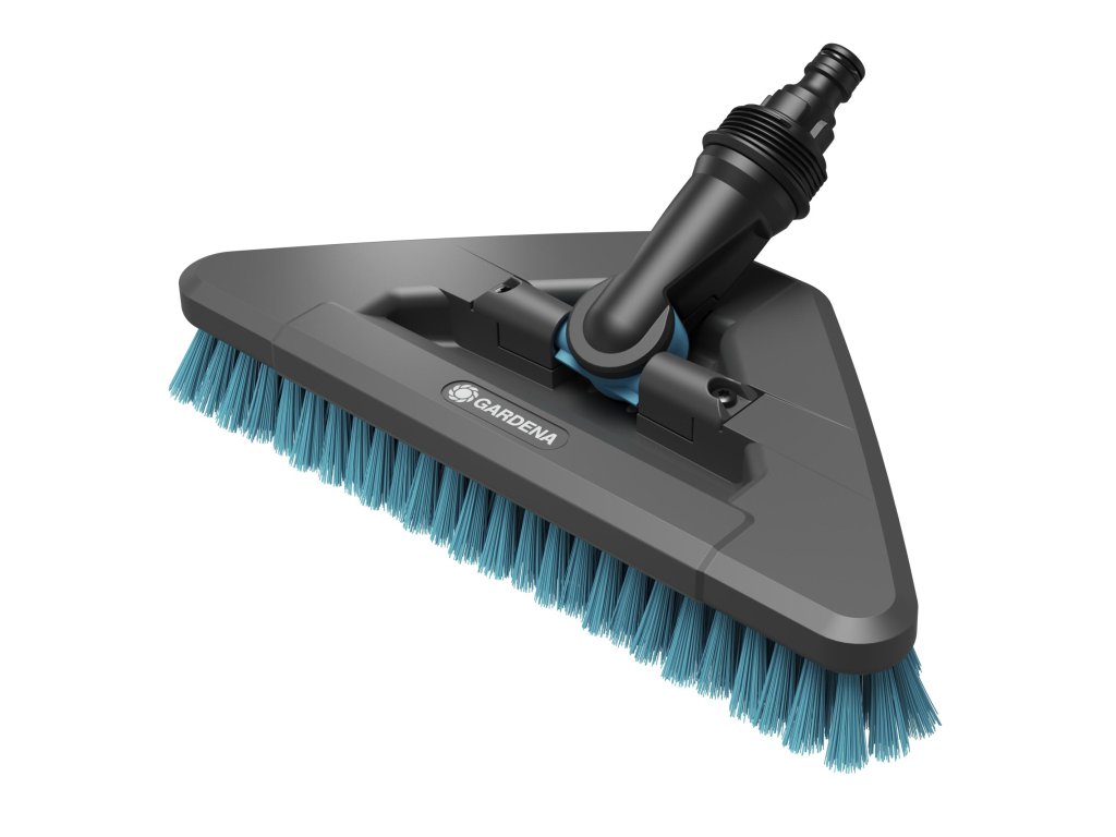 Der wendige und rundum schwenkbare Bürstenkopf ermöglicht ein flexibles Arbeiten mit der Reinigungsbürste. Sie lässt sich so optimal an die zu reinigende Fläche anpassen. Die dreieckige Bürste ist mit einem flexiblen Gelenk ausgestattet, wodurch auch das Erreichen schwer zugänglicher Ecken und Winkel möglich wird.