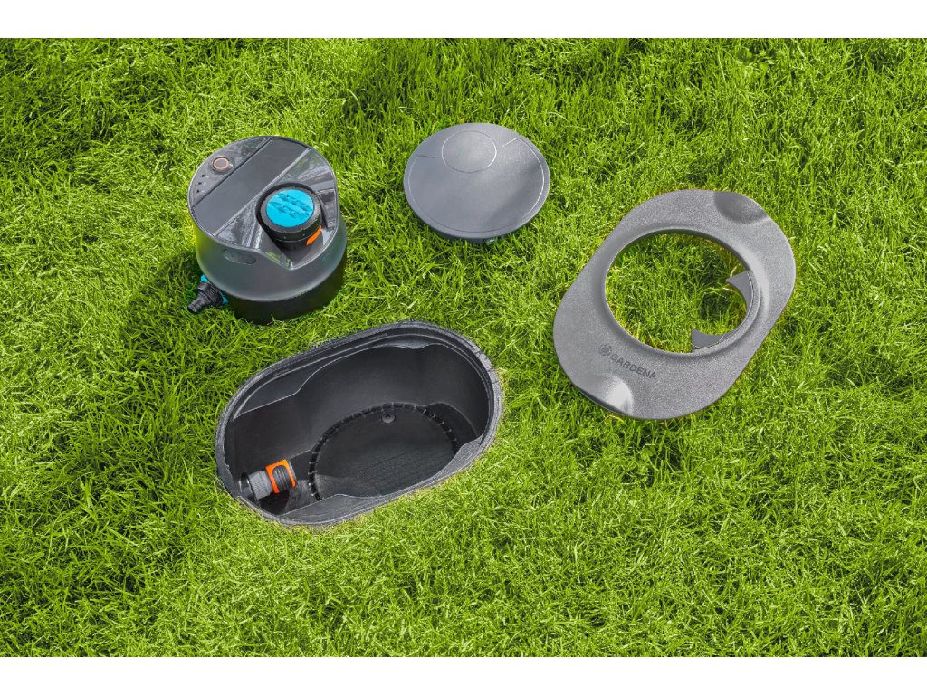- Lieferumfang: 1x GARDENA AquaPrecise, 1x Pipeline Schacht, 3x Spikes, 1x Abdeckung, 1x Winterdeckel, 1x Profi-System Anschluss-Set, 1x 2 m Flex Schlauch 19 mm (3/4"), 1x Anschlussdose, 1x 20 m Verlegerohr 25 mm, 2x Verbinder 25 mm x 3/4“, Innengewinde, 1x Entwässerungsventil